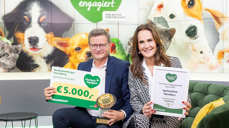 Am 04. Oktober 2023, dem Welttierschutztag, ehrt Fressnapf Österreich bereits zum zehnten Mal den Einsatz von Personen, die sich dem Tierschutz verschrieben haben. Mit der Initiative "Tierisch engagiert" fördert Fressnapf seit 2014 jedes Jahr einzigartige Projekte im ganzen Land mit Preisen im Gesamtwert
