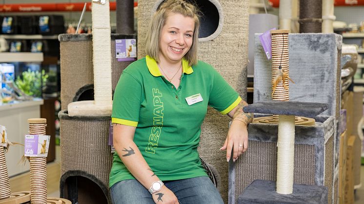 Bild 2: Denise Wimmer aus der Fressnapf Filiale in Liezen schloss erfolgreich die Weiterbildung zur Katzenexpertin ab und freut sich auf die Fragen der Kund:innen.