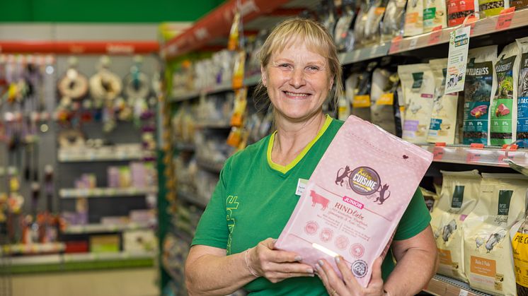 Bild 1: Daniela Gneist aus der Fressnapf Filiale in Vösendorf schloss erfolgreich die Weiterbildung zur Hundeexpertin ab und freut sich auf die Fragen der Kund:innen.