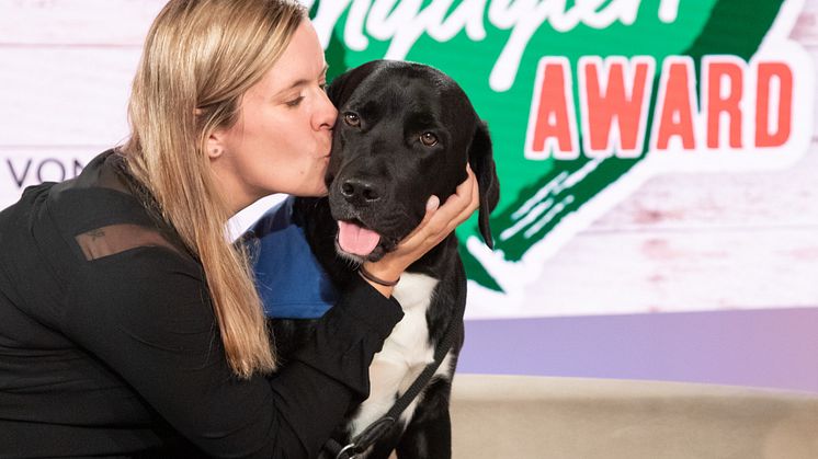 • Fressnapf TEA 2021 Tierischer Held Aron mit Katrin Veitl und Pokal